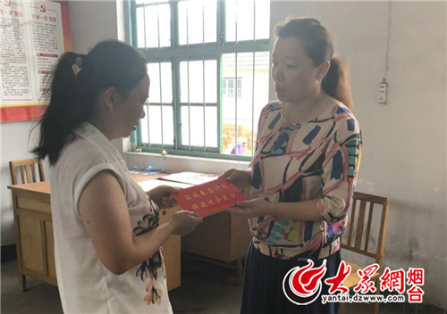 莱州市妇联副主席梁爱荣将5000元捐款送至刘宜静家中