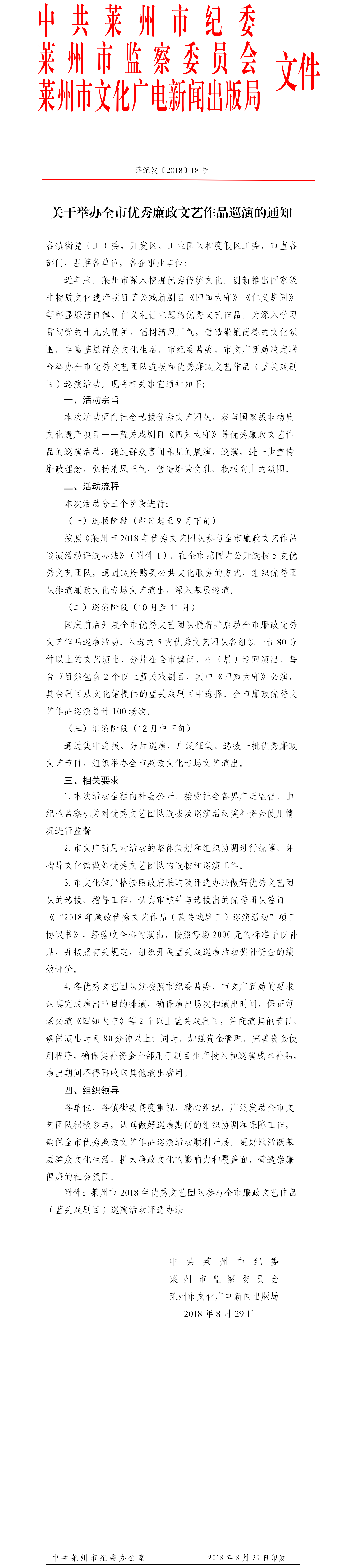 1.《莱州市2018年蓝关戏巡演活动选拔文艺团队报名表》(附件1)