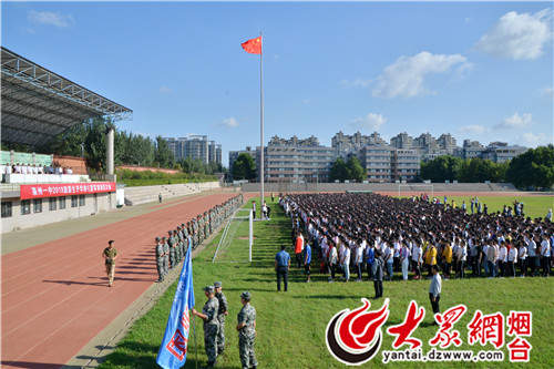 大众网莱州9月2日讯 (通讯员 顾雪艳 记者 田丰恺) 日前,莱州一中2018级新生开学典礼暨军训动员大会在莱州一中新校区西操场隆重举行。