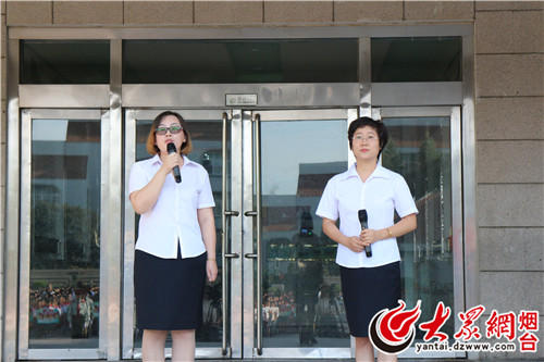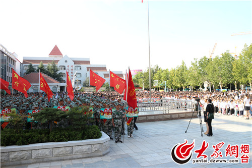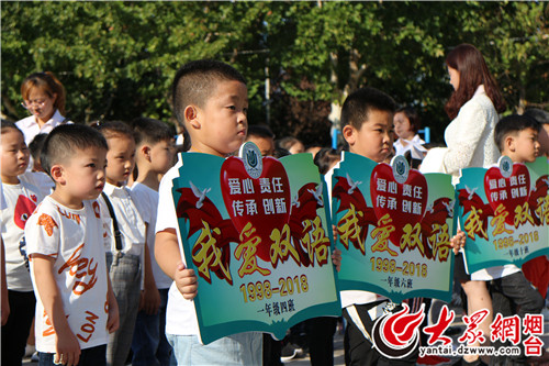 大众网莱州9月10日讯 (记者 孙国栋 通讯员 任文娟) 9月10日上午,莱州市双语学校“祝贺校庆二十年 生命花开满双语” 2018-2019学年开学典礼在双语升旗广场举行。全校师生以及一年级、六年级家长代表参加活动。