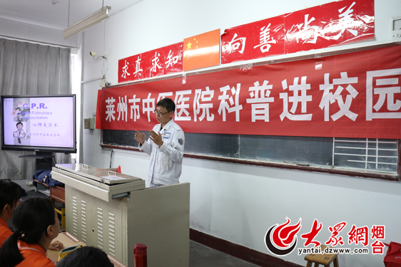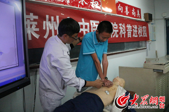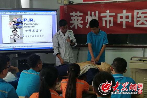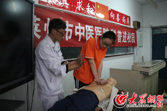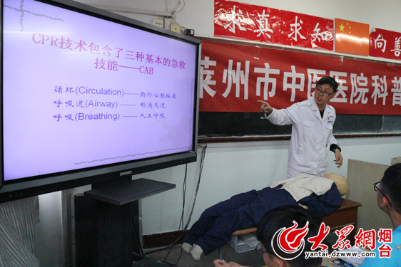莱州市中医医院急诊科青年骨干万猛主治医师为师生们讲解并演示了心肺复苏操作技巧