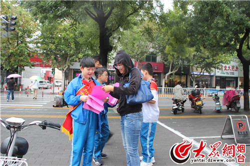 大众网莱州9月20日讯 (通讯员 苑凝 记者 田丰恺) 为使学生养成良好的习惯,培养优秀的道德品质,积极参与文明社会风尚行动,9月20日,在第16个“公民道德宣传日”到来之际,莱州市实验小学的队员代表走向街头,发放倡议书、宣传卡,用实际行动号召文明行为,践行道德规范。