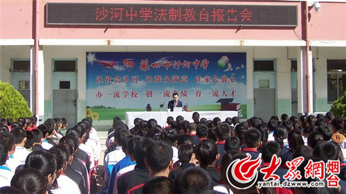大众网莱州9月30日讯 (通讯员 杜钦国 记者 田丰恺) 为营造良好的校园法制教育环境,提高学生的法律意识。9月30日,莱州市沙河中学组织学校学生开展法制教育报告会。
