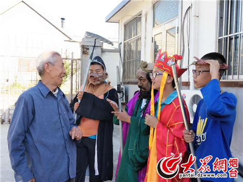 大众网莱州10月9日讯 (通讯员 李萌 刘笑益 记者 孙国栋) 金秋十月,丹桂飘香,为培养学生爱祖国,爱家乡的情感,增进学生对莱州“非物质文化遗产”的了解。近日,莱州市文峰中学30余名学生来到莱州市金城镇东季村和龙埠村,寻访莱州“非物质文化遗产”——蓝关戏。