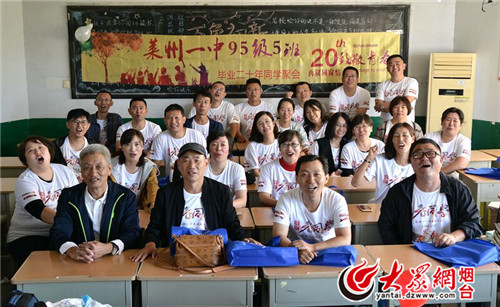 校友们先是在莱州一中老校区以班级为单位,在各自上过课的教室里进行了自主联谊活动。阔别多年后的再相聚,大家异常激动,坐到上学时自己的座位上,寻找当年上课的感觉,围着自己的任课教师亲切交谈;有的班级自发订购了统一服装,穿起了“班服”……此情此景让校友们啧啧感叹,回忆起校园里的青春往事,很多校友潸然泪下。