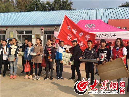 大众网莱州10月10日讯 (通讯员 张松桂 刘笑益 记者 孙国栋) 尊老爱老是中华民族的传统美德。为进一步营造尊老、爱老、助老的良好氛围,重阳佳节来临之际,莱州市云峰中学家委会组织初二级部家长和学生,来到郭家店镇返岭子村敬老慈善食堂开展“云峰学子约金秋,温暖孝心送山区”活动,表达对老人的浓浓关爱。