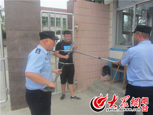 大众网莱州10月12日讯 (通讯员 陈丹 记者 孙国栋) “2018年10月10日10时许,一着黑色T恤衬的年青男子,手持砍刀在莱州市第六中学袭击保安人员”,接警后,莱州市公安局平里店派出所快速反应小分队迅速赶到现场,在口头警告无果的情况下,民警利用器械将恐怖分子制服。原来,这是平里店派出所开展的反恐防爆演练。