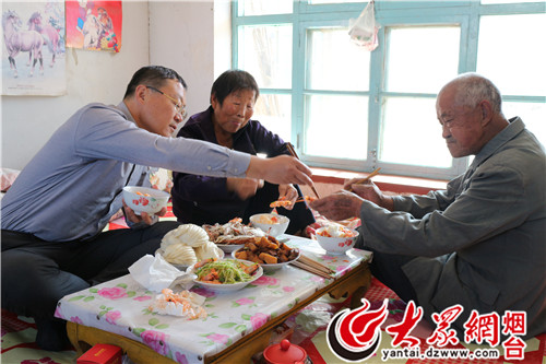 到达虎头崖镇后桥村后,莱州科协机关干部带着准备的饭菜和大米,分赴各自结对帮扶的贫困户家中,与贫苦户围坐在一起共同享用午餐,进行亲切交谈。详细了解了贫困户近期的生活情况,并深入了解各项扶贫政策落实情况和贫困户生病受灾、买药办事、过冬取暖等情况。