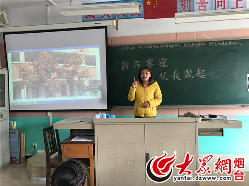 大众网莱州11月12日讯 (通讯员 宋天慧 刘旭军 记者 田丰恺) 为应对恶劣的雾霾天气,让学生们认识雾霾的危害及防护知识,沙河镇中心小学开展了“防治雾霾,学会自我保护”主题活动。
