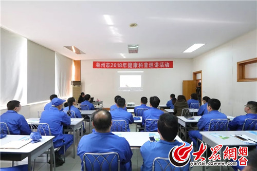 活动中,来自烟台市疾控中心、烟台山医院、烟台市传染病医院、莱州市疾控中心、莱州市中医医院的专家分赴莱州市文昌路街道办事处、莱州市人民检察院、莱州日进机械有限公司、莱州公路局、莱州市第一中学、西海实业有限公司送变电工程分公司开展健康科普巡讲。