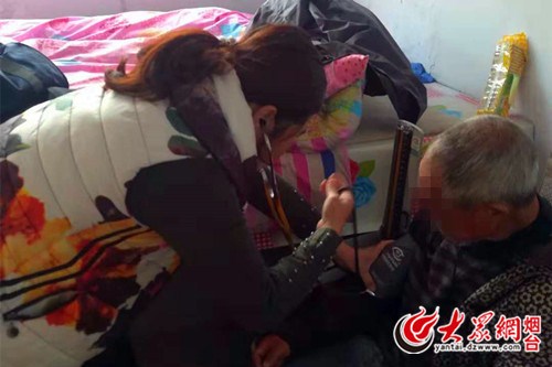 爱心使者给老人检查治疗
