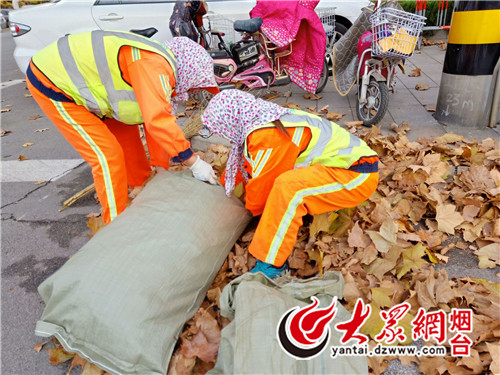 大众网莱州11月16日讯 (通讯员 张晓蕾 李海燕 记者 徐雨梅) 进入11月,随着气温降低寒风刮起,市民感受到冬天的寒意,枯黄的树叶纷纷从树上落下,环卫工人表示“鸭梨”很大。