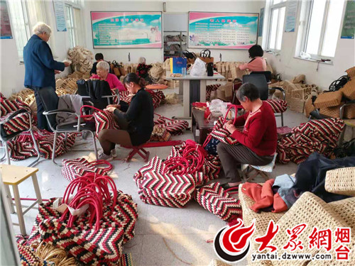 莱州市柞村镇十字口村村民正在加工草辫工艺品