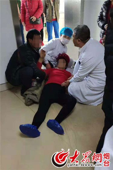 11月26日上午10点,在莱州市中医医院CT室发生了感人一幕。一位60多岁妇女在进CT室检查过程中,突感身体不适,失去意识向后摔倒,恰巧主管护师王慧经过,发现她脸色不好,不停翻白眼,随之身体向后倒去,王慧眼疾手快,立即上前扶住病人,由于病人体重较王慧重得多,王慧只能一边扶住病人一边慢慢跪下,最终将病人安稳地靠在王慧腿上。