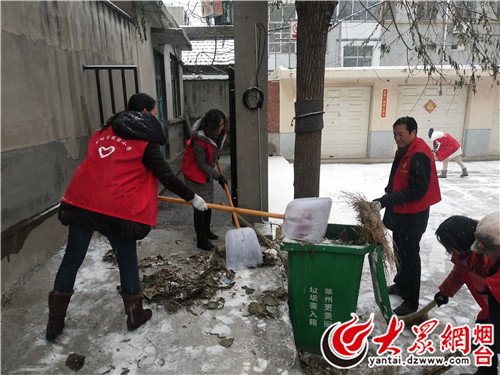 大众网莱州12月12日讯 (通讯员 苑凝 记者 田丰恺) 为让辖区居民生活舒适、平安出行,2018年12月11日,莱州市实验小学工会组织党员、教师走上街头、走进社区,开展卫生清理活动,为辖区居民清扫卫生、积雪。