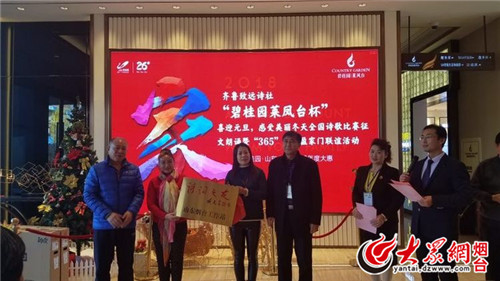 大众网莱州·海报新闻12月24日讯 2018年12月23日齐鲁致远诗社“碧桂园莱凤台杯”喜迎元旦,感受美丽冬天全国诗歌征文比赛朗诵暨“365”福喜盈家门联谊活动取得圆满成功。