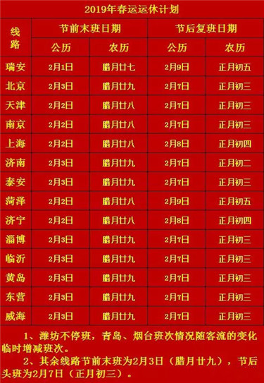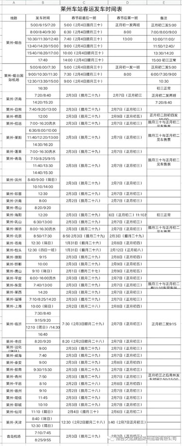 2019年春节临近,莱州三大客运车站出台春节时刻表。[详细]