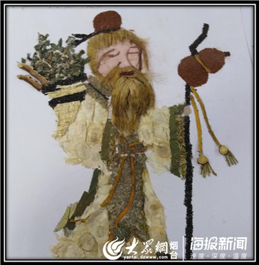 作品寓意:悬壶济世惟妙惟肖的突显了一位传统老中医的形象。看!这位老爷爷手持药葫芦,大腹皮作须发,木蝴蝶为衣衫,闭目前行,心志坚定。作品赞颂了医者刻苦钻研、开拓创新、精益求精、一视同仁、平等相待的高尚医德。