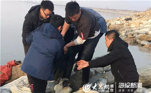 22日下午,莱州市文昌派出所民警王志伟在取证时发现了正在赶海的马同财。“当时马同财距离我有二、三百米,趴在轮胎做的救生圈上往岸边走,我观察到他在水里的行动状态不太对劲,就多留意了一下,在走到离岸边50米左右的地方时,马同财好像有点坚持不住了,头不断地往水里扎,我当时也没多想,赶紧脱了大衣跳进水里把马同财给拽到了岸边,当时岸边还有几个小伙子发现了情况,过来一起帮忙把马同财抬上了岸,随后就拨打了120急救电话。”王志伟说。