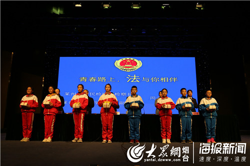 聘任仪式上,莱州双语学校副校长鲍海起向市人民检察院检察长周天军颁发了法治副校长聘书。随后,与会领导向学生代表赠送了法治图书和宣传资料。
