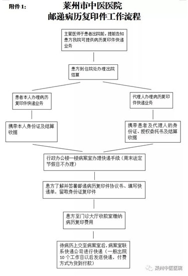 为满足患者医保、新农合、商业保险、异地报销等需求,更加方便患者,免去其出院后返院复印病历的麻烦,节省患者的宝贵时间及往返交通不便,及时获取病历复印件,莱州市中医医院开展了“病历复印预约邮寄”服务,真正实现了患者病历复印“零跑腿”。