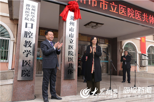 随后,市领导与市市立医院理事长焦学军共同为莱州市市立医院医共体揭牌。