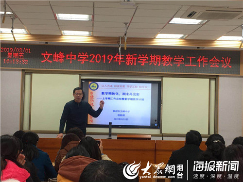 大众网莱州·海报新闻3月1日讯 (通讯员 程挺模 记者 孙国栋) 为落实莱州市委市政府“巩固提升年”和市教体局“教育质量提升年二期行动”工作要求。3月1日,莱州市文峰中学召开2019年教学工作会议,部署新学期教学工作任务。