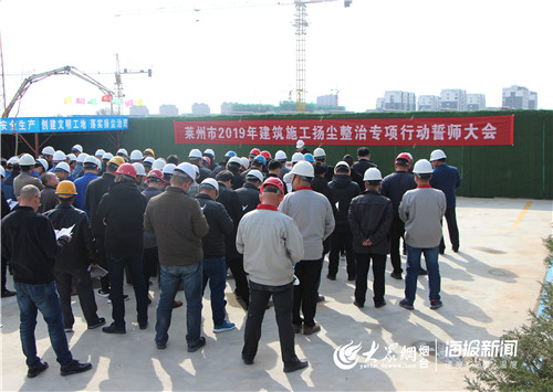 3月21日,莱州市住建局组织全市开发建设单位负责人,建筑施工总承包企业安全生产负责人,外地进莱施工企业负责人,监理企业技术负责人,混凝土搅拌站负责人,共约120人召开2019年建筑施工扬尘整治专项行动誓师大会,全面启动建筑扬尘整治“雷霆行动”。