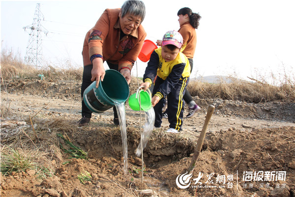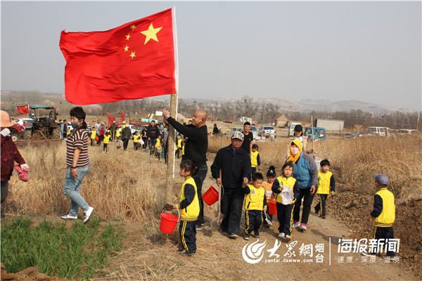 大众网莱州·海报新闻4月4日讯 (记者 徐雨梅) 春风送暖,万物复苏,春风吹绿了枝头上的嫩芽,吹绿了地上的小草,也吹动了光明幼儿园师生们的热情。为在孩子们的心里播下绿色希望,让他们在保护自然中亲身体验劳动的乐趣,感受爱绿护绿的意义,4月4日,莱州市虎头崖镇光明幼儿的孩子在老师和家长的带领下,开展了首届亲子植树活动。