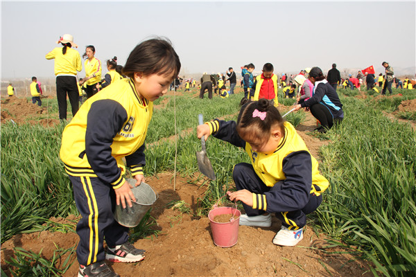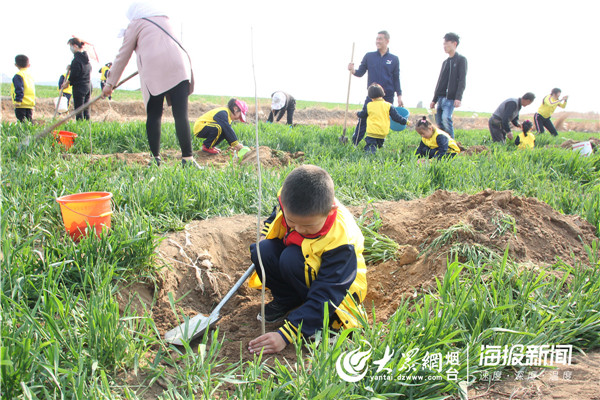 孩子们在老师的指导下,学着家长一锹一锹地铲土填入树坑、培实新土、提桶浇水,道道工序都做得认真、干得起劲。和煦的春风里,植树现场一派火热的劳动景象,一番忙碌后,一株株树苗沐浴着春光,迎风挺立。