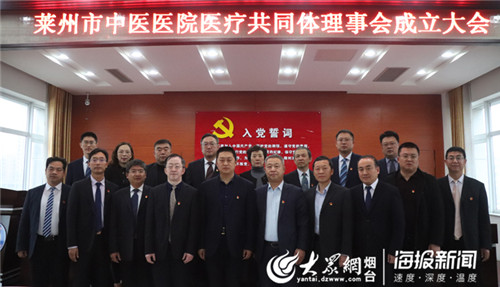 大众网莱州·海报新闻4月9日讯 (记者 曹昱 通讯员 王璀琳 吕巧凤 ) 4月9日,莱州市中医医院医共体理事会成立大会在莱州市中医医院召开,会议选举莱州市中医医院党委书记、理事会理事长陈坤同志担任莱州市中医医院医共体理事会理事长并任命医共体理事会成员,莱州市中医医院医共体理事会全体成员审议并通过《莱州市中医医院医疗共同体医院章程》。