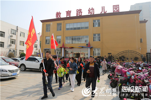 上午9时许,市教育路幼儿园中、大班的师生家长从学校出发,步行前往莱州广场的活动场地。在行进途中,迎着和煦的春风,伴着欢快的音乐声,家长与孩子们手拉手,与春天相约,共同踏上探秘自然的行程。“我们通过‘相约春天’健步节活动,把徒步行走这种健康的生活方式传递给每个家庭,为所有家长和幼儿提供一次放松之旅”市教育路幼儿园负责人表示。
