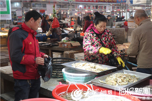 大众网莱州·海报新闻4月15日讯 (记者 孙国栋) 俗话说靠山吃山靠海吃海,莱州的海鲜品种丰富,成为老百姓餐桌上不可或缺的鲜美味道。2019年休渔期将近,大众网莱州·海报新闻记者走进莱州万通水产市场,探秘莱州海鲜早市,体验莱州的新鲜味道。