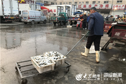 海鲜批发商贩张东生今天售卖的是新鲜海鲫,据他介绍,车厢中的数十箱海鲫历经了5个多小时的“长途跋涉”,从400多公里外的连云港来到莱州。作为时下市场上少有的“新鲜景”,张东生的海鲫受到了商贩们的的格外关注,前来选购的商贩络绎不绝,小小的摊位格外忙碌。