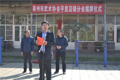 莱州市体育运动服务中心副主任、山东省武术协会副主席、平里店镇相关领导、市武术协会副会长及各界武术代表人员参加了此次活动。山东省武术协会副主席、平里店镇党委书记为协会进行揭牌。揭牌仪式后,平里店镇武术爱好者们进行各种武术、器械表演,为此次活动增光添彩。