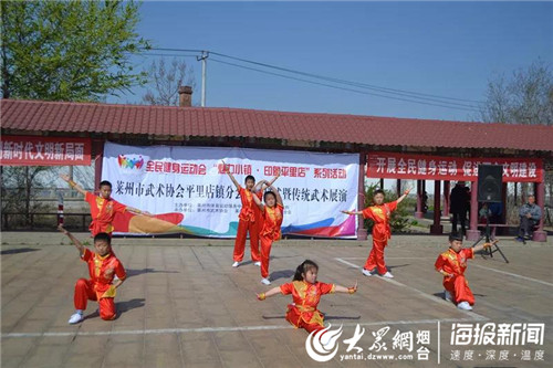 大众网莱州·海报新闻4月16日讯 (通讯员 孙兴涛 记者 孙国栋) 为繁荣平里店镇文化活动,传承中华武术精髓,宣传和弘扬中华传统武术精神,为全镇武术爱好者提供更多的交流学习平台,4月14日,莱州市武术协会平里店镇分会揭牌仪式暨传统武术展演活动在平里店镇晏婴广场隆重举行。
