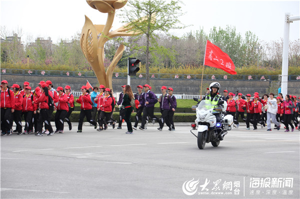 高二·4班的邱显婷和李文斐兴奋地告诉大众网莱州·海报新闻记者:“我们班主任出发前告诉我们,走完全程的会有小礼物。今年10月份,我就年满18岁了,这次活动也算是我个人的一次成人礼,我一定会走完全程的。”