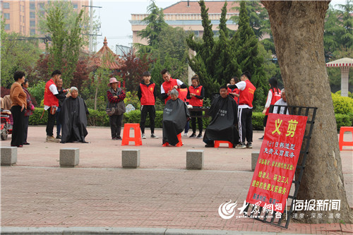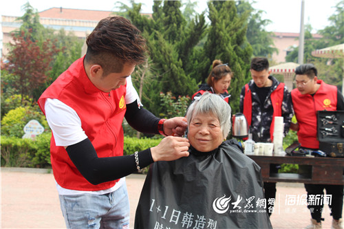 大众网莱州·海报新闻4月30日讯 (通讯员 张艺凡 记者 徐雨梅) 4月30日上午,莱州市沙河镇“1+1日韩造型”的青年志愿者在沙河镇政通广场上开展了关爱老人·爱心义剪活动,免费为55岁以上的市民理发。