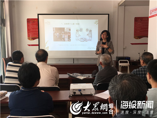 讲座中,孙妍从老年人的生活规律、环境、生理等方面的改变,深入浅出的分析老年人出现心理问题的原因。针对如何积极防治老年人的心理疾病,解除他们的心理障碍,孙妍提出老年人应当学会自我调节、保持乐观心态、多学习多动脑多接受新事物等方式方法。