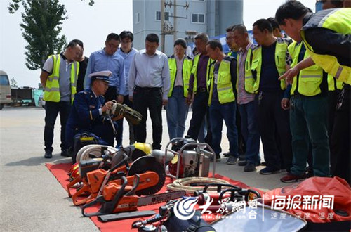 本次安全演练本着以知识讲座为基础,以实际操作为手段的原则,邀请莱州市消防中队的工作人员现场演示诸如灭火器、消防水带水枪、消防服、空气瓶、液压剪、扩张器等相关消防器材、器械的使用,并进行了体验操作。
