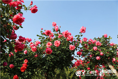 大众网·海报新闻莱州5月16日讯 (记者 田丰恺) 遍地锦绣迎四方宾朋,千年古邑飘月季花香。连日来,随着气温不断回升,月季花也已陆续进入盛花期,在莱州中华月季园,园内20多万株月季竞相绽放,花海如潮,芬芳四溢,吸引无数游客穿行其中,观赏美丽的月季花,尽情地拍照留念。