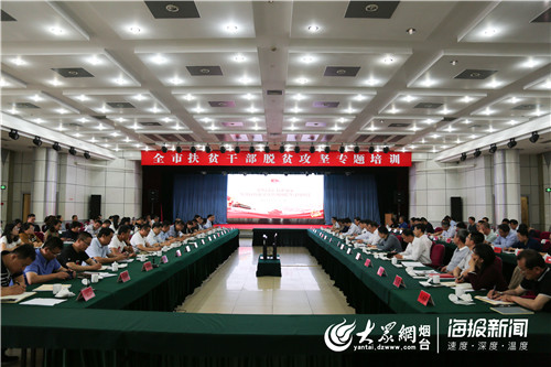 大众网·海报新闻莱州5月17日讯 (记者 田丰恺 通讯员 孙洪圳) 5月17日上午,莱州市扶贫干部脱贫攻坚专题培训会议在莱州宾馆会议中心召开。烟台市委副秘书长、扶贫办主任尹鹏作了《聚焦问题精准施策坚决打好脱贫攻坚巩固提升这次硬仗》的辅导讲座。
