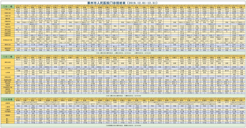 莱州市人民医院12月门诊排班表