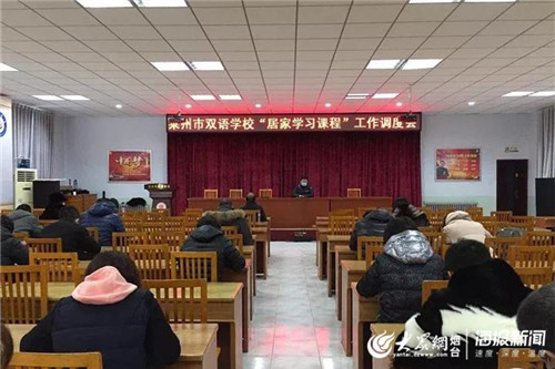大众网·海报新闻烟台2月18日讯(通讯员 任文娟 记者 孙国栋)2月17日,莱州市双语学校党总支书记、校长组织业务副校长、部门负责人召开“居家学习”调度会议,就学校贯彻教育系统“停课不停学”指示精神,聚焦生命教育,落实《居家学习课程计划》,全面打赢疫情防控阻击战。