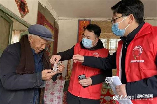 “大爷,现在是疫情防控时期,出门一定戴好口罩,勤洗手,常通风,不要串门,有困难随时联系我们……”,这一幕发生在莱州市沙河镇的每一处新时代文明实践站。