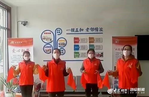 “小区门、村庄口,处处有人来把守。量体温,戴口罩,防控知识要记牢。红旗飘,党徽耀,坚信党的好领导……”,西小区“枫染寒同”新时代文明实践站的志愿者自编自演了一段快板,录制成视频,发到社区居民群中,社区居民纷纷点赞、转发、传唱。