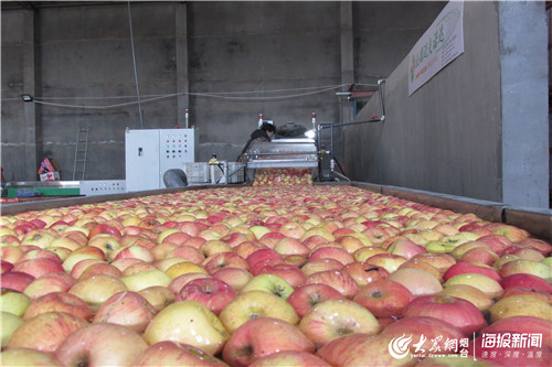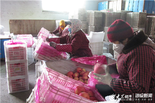 苹果套袋、装箱、装车……在天晟果业专业合作社的冷库车间内,工人正在忙着将冷库贮存的新鲜苹果包装发货。“疫情发生以后,我们非常着急开工,急着给老百姓卖苹果,正月十七我们递交了复工申请,在镇政府的帮助下,第一时间实现了复工。年前库存苹果有1万吨左右,从开工至今我们已经销售了7千吨”,合作社总经理宿俊忠说。