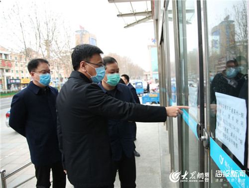 大众网·海报新闻烟台3月2日讯 (记者 孙国栋) 2月29日,莱州市委书记、市新冠肺炎疫情处置领导小组组长于宁到烟台交运莱州汽车站、立健连锁药房、荣军医院、莱州一中等地,实地调研督导疫情防控工作。