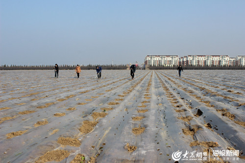 这几天,莱州市城港路街道朱旺村维松农民合作社的社员开始忙碌起来,他们将200多亩的白菜塑料薄膜履盖层一一挑破,让生长在薄膜下的小白菜重见天日。
