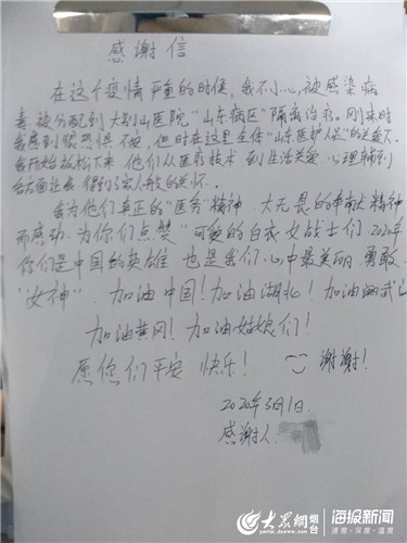 说不想家是假的,池瑞芬看到治愈患者一个接一个的回家,她心里为他们高兴的同时也会想起自己的家人和孩子。“有一次整理行李的时候,发现儿子在我走之前写了一份信,没有告诉我,就偷偷放在箱子底下。儿子说让我在救治别人的时候要保护好自己,他会在家好好学习,等我回家。”池瑞芬说。我没想到走之前家里情绪波动最大的儿子会偷偷给我写信,在信里说“我爱你”,我相信我儿子一定会理解妈妈,相信妈妈。
